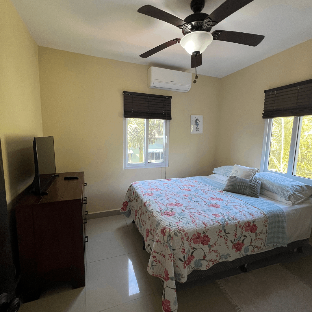 Casa Serenity is a cozy, three-story hideaway designed for families, couples, and small groups who want comfort, convenience, and a touch of island charm. With two queen bedrooms, a full-sized bed, two bathrooms, and a breezy rooftop patio surrounded by palm trees and jungle views, the house feels peaceful and private — yet just minutes from the island’s best beach, restaurants, and activities.